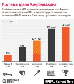Кроме того, власти Азербайджана купили право проводить гонки раз в год на следующие три года. Общая сумма неизвестна, но, по оценкам министра молодежи и спорта Азада Рахимова, она составила от $66 до $86 млн. Согласно другим источникам, заплачено $150 миллионов. Правительство также потратило до $90 миллионов на инфраструктуру, что подняло общую цену проведения гонок до $240 миллионов.