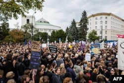 В Варшаве и других городах Польши прошла предупредительная забастовка, которую организаторы назвали "Черный понедельник". Десятки тысяч участников — в основном женщины — вышли с протестом против закона, полностью запрещающего аборты. Этот закон делает подозреваемыми даже беременных, потерявших ребенка из-за выкидыша. Корреспондент Настоящего Времени наблюдал за акцией в центре Варшавы.