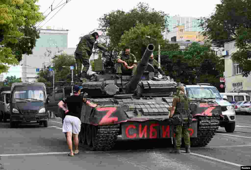 Жители Ростова делают селфи на фоне военной техники вагнеровцев