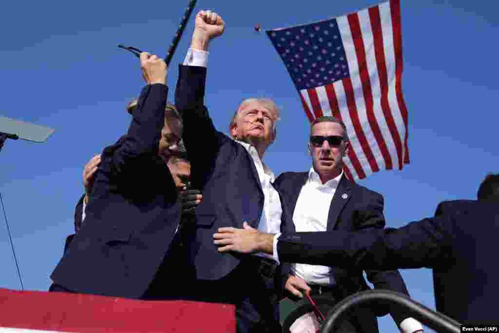 Стрельба произошла 14 июля во время выступления Трампа перед сторонниками под открытым небом. В сторону Дональда Трампа выстрелили около десяти раз. Вторым выстрелом стрелок ранил Трампа