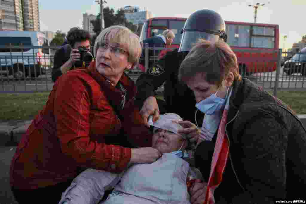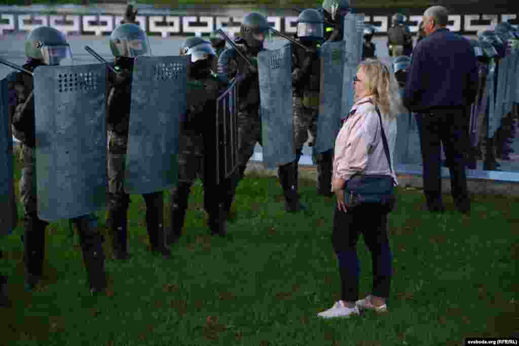 К вечеру, когда у стелы "Минск – город герой" собрались около пяти тысяч человек, силовики стали действовать крайне жестко: применялись водометы с оранжевой жидкостью вместо воды, дубинки, электрошокеры, слезоточивый газ. Есть раненые
